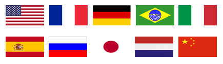 English, French, German, Portuguese, Italian, Spanish, Japanese, Russian, Dutch and Chinese